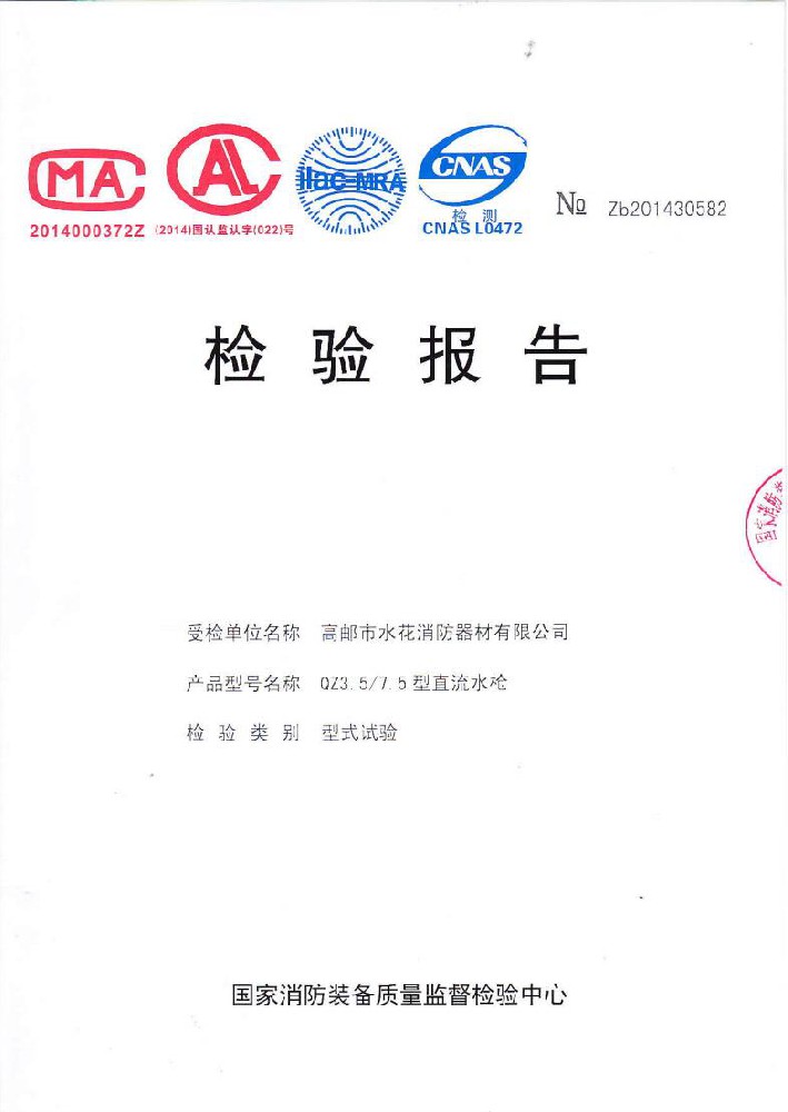我廠創(chuàng)辦于一九七六年六月,現(xiàn)有職工600人,其中各類技術和管理人員68人。擁有固定資產(chǎn)5000萬元,占地面積35000多平方米,建筑面積25000多平方米。建立了完善的質(zhì)量體系,取得多種“計量合格確認證書”,并成為江蘇及多省的消防協(xié)會會員單位。工廠技術力量雄厚,生產(chǎn)和檢測設備齊全,工藝先進。生產(chǎn)“水花”牌水帶接口: KDK65, KD65,KY65,KN65。消防水槍: QZG3.5/7.5, QZ3.5/7.5,QP8/0.7Z泡沫水槍。室內(nèi)消火栓: SN65, SNW65-I,SNZ65, SNZW65-I。 消防軟管卷盤JPS0.8-19/25。生產(chǎn)的“郵花”牌,消防有襯里水帶:65-8、10、 13、 16、20、 25型; 80-16、 20、25型。水帶接口: KD50、65; KY50、65;KN65。消防水槍: Q2Z3.5/7.5、 5。 室內(nèi)消火栓: SN65, SNW65-I, SNZ65, SNZW65-I。 并于二零一五年五月通過公安部消防產(chǎn)品合格評定中心3C換版檢驗,獲得以上產(chǎn)品所有的強制認證證書,準予生產(chǎn)和銷售,產(chǎn)品行銷全國各地,深受廣大用戶好評。